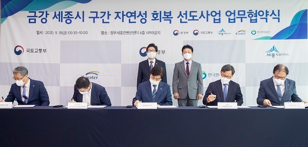 환경부, 국토부, 세종특별자치시, 한국수자원공사, 한국환경공단 등 5개 기관은 이날 오전 정부세종컨벤션센터에서 선도사업 이행을 위한 업무협약을 체결했다.