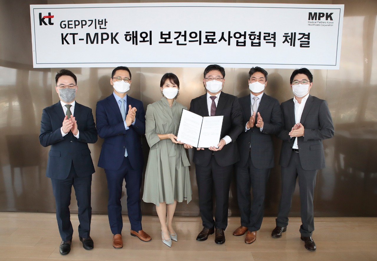 KT가 ㈜메디컬파트너스코리아(이하 MPK)와 서울 종로구 KT 광화문빌딩 East에서 ‘해외거점형 대한민국 디지털 & 바이오 헬스 사업을 위한 업무협약(MOU)’을 체결했다고 21일 밝혔다. 협약식에는 KT AI/BigData사업본부장 김채희 상무, MPK 김헌진 대표이사 등 양사의 주요 관계자들이 참석했다.
