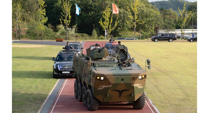 차륜형장갑차도 후미서 뒤따라…대열 앞뒤 현대로템 제품 투입