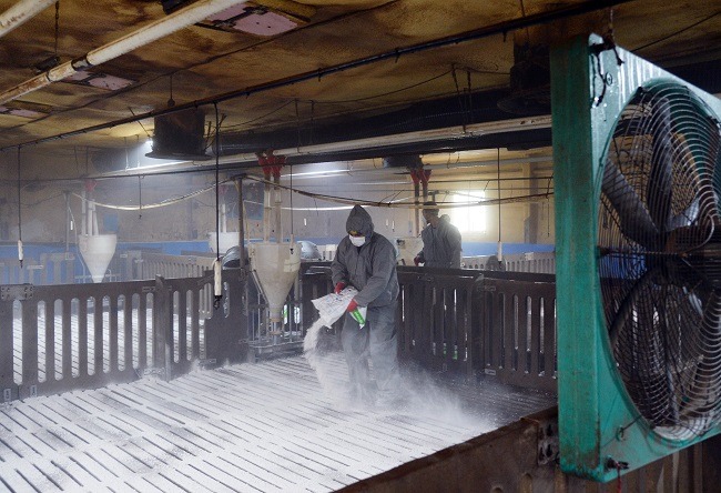 중수본은 지난 10일 야생멧돼지 방역대(양성개체 발견지점 반경 10km) 내 양돈농장 175곳에 대해 긴급 현장점검반을 파견, 소독·방역실태를 점검한 결과 생석회 도포가 미흡한 농가가 다수 있음을 확인했고 이에 따라 11일 경기·강원 북부 및 인접 14개 시군 양돈농장 358곳에 대해 긴급 생석회 도포를 실시했다.