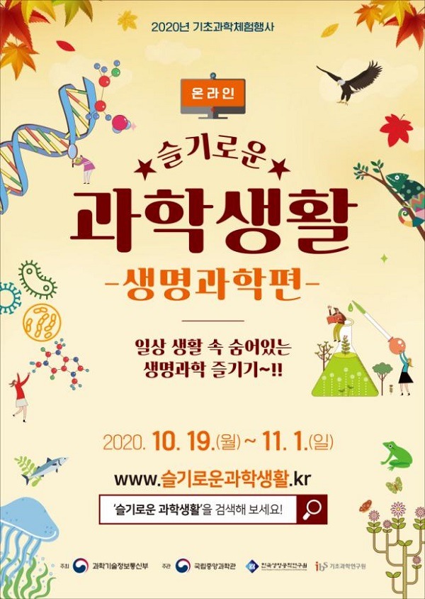 국립중앙과학관은 기초과학에 대한 관심과 흥미를 느끼고 중요성을 알리기 위해 기초과학 체험행사인 슬기로운 과학생활 ‘생명과학편’을 19일부터 내달 1일까지 2주간 온라인으로 개최한다고 밝혔다.