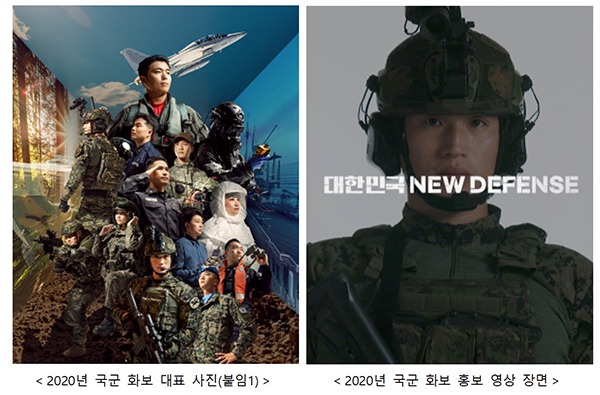 국방부는 2020년 국군 화보 ‘대한민국 뉴 디펜스(NEW DEFENSE)’를 국방부 누리소통망(SNS)을 통해 23일 첫 공개, 12월초까지 선보인다.