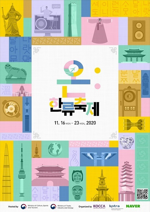 문화체육관광부(장관 박양우)와 한국콘텐츠진흥원(원장 김영준, 이하 콘진원)은 산업통상자원부(장관 성윤모), 대한무역투자진흥공사(사장 권평오), 네이버(대표 한성숙)와 협력해 종합 한류행사 ‘온:한류축제(On:Hallyu Festival)’를 오는 11월 16일부터 23일까지 개최한다.