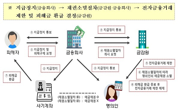 한편, 법에서 위임한 채권소멸절차 개시 최소 기준액을 1만원으로 설정해 금융회사로 하여금 효율적인 피해구제에 집중할 수 있도록 하고, 소액이더라도 피해구제를 원하는 피해자에 대한 채권소멸절차 개시를 요청할 수 있다는 점을 통지하도록 했다.