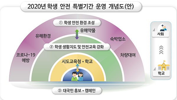 나아가 수능 이후 학생들의 활동 확대 및 대학별평가 실시로 인한 이동량 증가가 예상되므로 감염병 예방과 학교 내외의 안전사고 방지를 위해 안전교육과 생활지도를 강화하고 유관 부처와 함께 특별기간을 운영한다.