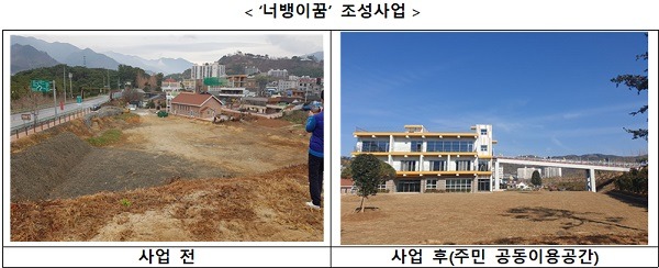 아무도 활용하지 않던 공터에는 주민 공동이용시설 ‘너뱅이꿈’이 조성돼 지역 주민들이 직접 운영에 참여하는 마을카페 및 식당, 게스트하우스 등으로 활용된다.