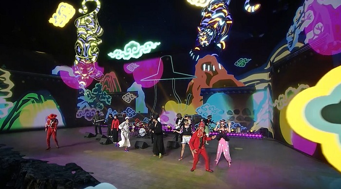 이날 공연의 오프닝은 최첨단 실감 기술과 결합한 이날치와 앰비규어스댄스컴퍼니의 <범 내려온다>가 맡았다. 이 무대는 증강현실(AR) 기술을 활용해 한국화 느낌의 호랑이 오브제가 가사에 맞춰 내려오는 등 전통적 요소와 현대 실감 기술의 결합으로 새로운 장을 열었다는 평을 받았다.