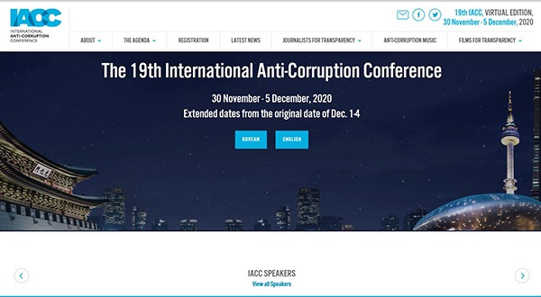 오는 12월 1일부터 4일까지 제19차 IACC(국제반부패회의, International Anti-Corruption Conference)가 한국에서 온라인 화상회의로 개최된다.