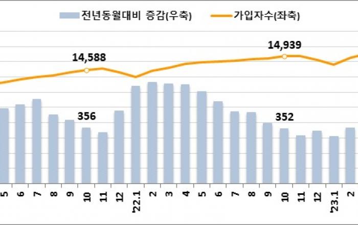 2023년 10월말 기준 고용보험 상시가입자는 1,528만 1천명으로 전년동월대비 34만 2천명(+2.3%) 증가하였다. 산업별로는 제조업(+117천명)과 서비스업(+216천명)에서 모두 증가했다. 제조업은 금속가공, 식료품, 자동차, 기타운송장비 등을 중심으로