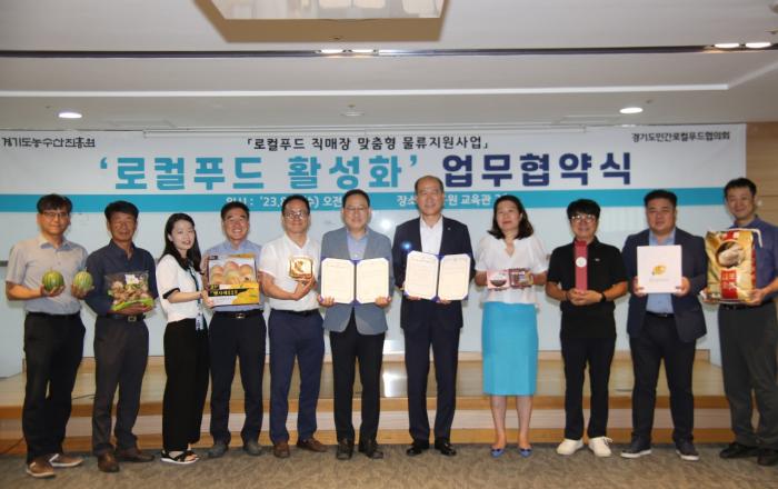 경기도농수산진흥원과 경기도 민간로컬푸드 협의회가 9일 경기도 로컬푸드 활성화를 위한 업무협약을 체결했다. 경기도 민간로컬푸드 협의회는 2022년 로컬푸드 직매장간 소통과 로컬푸드 정착·활성화 마련을 위해 10개 직매장이 구성·설립되어진 설립된