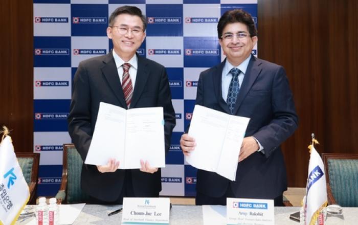 한국수출입은행은 지난 11일 인도 HDFC 은행과 3억달러 규모의 전대금융 한도계약을 체결했다고 12일 밝혔다. HDFC 은행은 1994년 설립된 인도 최대 민영은행이다. 이춘재 수은 전대금융부장은 11일 인도 기프트 시티에서 아룹 락시트(Arup Rakshit
