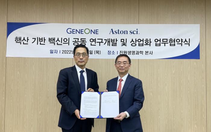 진원생명과학은 치료용 항암 백신 전문 기업 애스톤사이언스와 차세대 핵산 기반 백신의 공동 연구 개발 및 상업화에 대한 전략적 협력 관계를 구축하기로 하는 양해 각서(MOU)를 체결했다고 8일 밝혔다. 진원생명과학 담당자는 “이번 양해 각서 체결을 통해 양 사는 신약 개