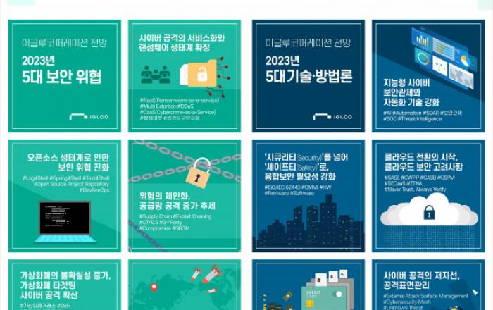 이글루코퍼레이션은 2023년 보안 위협에 대한 주요 예측을 담은 ‘2023년 보안 위협·기술 전망 보고서’를 발표했다.이글루코퍼레이션 보안분석팀의 예측에 기반해 올해 11번째로 작성된 이번 보고서에는 2023년 발생할 주요 사이버 보안 위협과 이에 대응하기 위한 보안