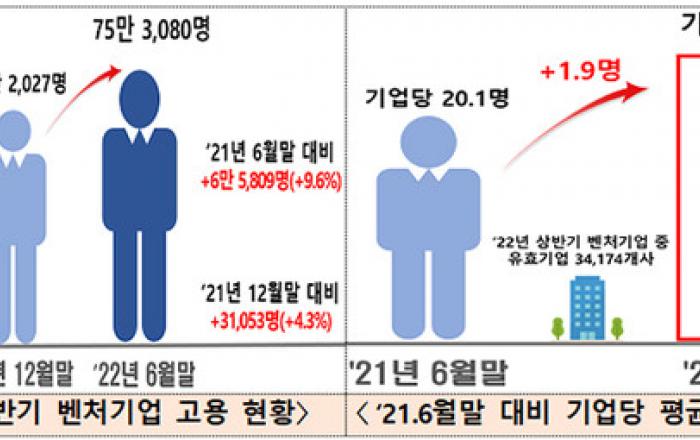 국내 벤처·스타트업 종사자는 총 76만여명으로, 1년 새 9.7%가 증가한 것으로 조사됐다. 또 기업가치가 1조원이 넘는 비상장 기업을 일컫는 유니콘 기업의 고용 증가율은 39.4%로 나타났다. 중소벤처기업부는 올해 6월 말 기준 국내 벤처·스타트업 3만 436