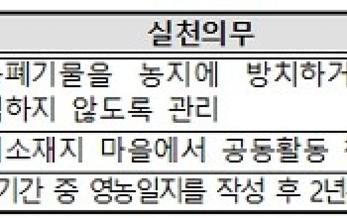 농림축산식품부는 올해부터 기본형 공익직불금 수령을 위한 17가지 준수사항을 전면 시행한다고 25일 밝혔다.공익직불제는 농업·농촌의 공익기능 증진과 농업인 소득안정을 위해 일정 자격을 갖춘 농업인에게 직불금을 지급하는 제도이다. 농업인이 공익직불금을 받기 위해서는 법령에
