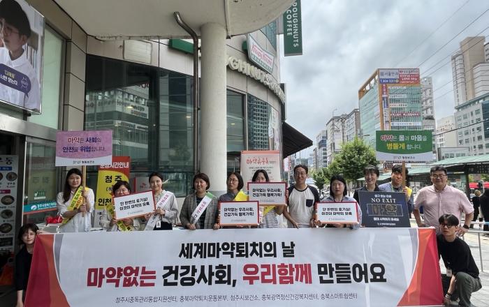 충북도는 제37회 세계마약퇴치의 날(6.26.)을 맞아 3주간(6.26.~7.14.) 마약류 폐해에 대한 국민적 경각심 고취를 위하여 상담, 교육, 캠페인, 전광판 홍보 등을 실시하였다. 충북도청에서는 한마음 마약퇴치 걷기 워크온 챌린지를 시행하여 도민 3,389명