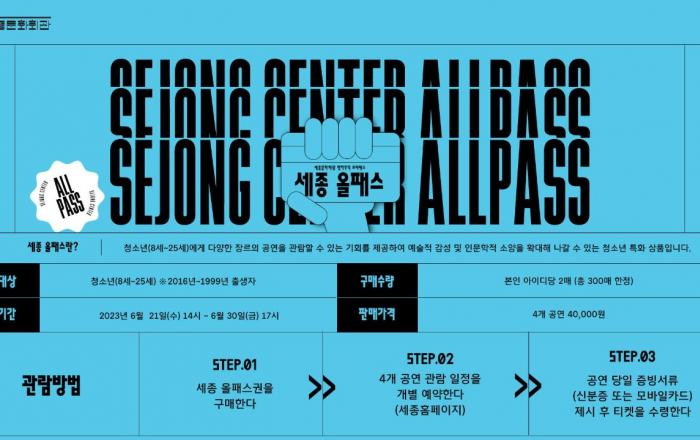 세종문화회관은 8세부터 25세(2016년생~1999년생)까지 청소년에게 저렴한 공연관람의 기회를 주기 위해 특별한 티켓 패키지 를 시행한다. 세종문화회관은 서울시 ‘약자와의 동행’ 정책에 따라 문화예술에 대한 시민의 접근성을 향상시키고자 노력하고 있으며, 는 뮤지컬과