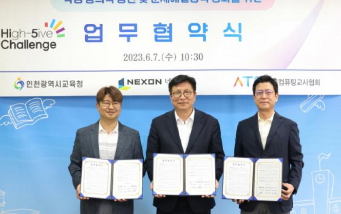 인천광역시교육청은 학생 창의력 증진과 문제해결 능력 강화를 위해 재단법인 넥슨재단, 사단법인 초등컴퓨팅교사협회와 업무협약을 7일 체결했다. 주 내용은 ▲인천 지역의 학교에 브릭 교구와 노블 엔지니어링 기반 새로운 교육 '하이파이브 챌린지(High-5ive Chal