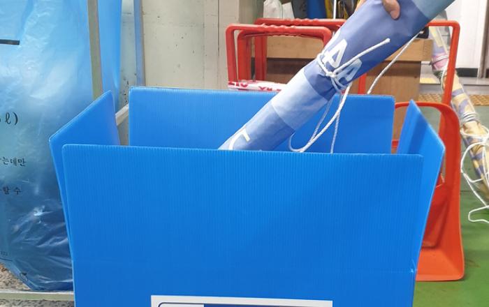 성남시는 시에서 발생하는 폐현수막 원단 재활용률을 높이기 위해 50개 동 행정복지센터에 폐현수막 수거함을 설치했다. 성남시 현수막 사용 현황을 살펴보면 시의 인가를 받고 지정 게시대에 게시하는 현수막, 각 구청에서 철거하는 불법 현수막, 그리고 각 동의