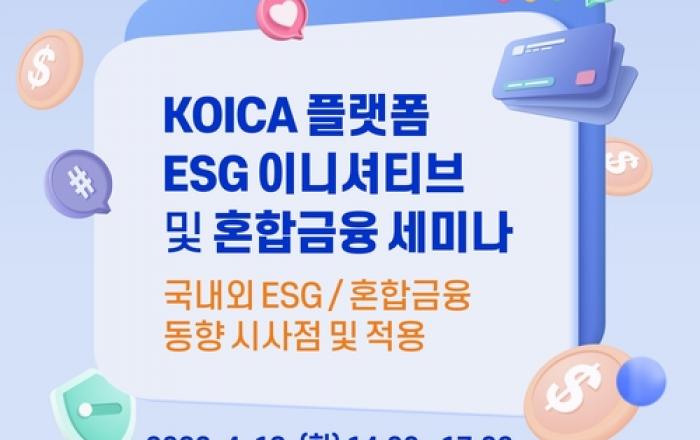 코이카(KOICA, 한국국제협력단)는 오는 18일 오후 2시부터 5시까지 서울 중구 페럼타워 페럼홀에서 '국내외 ESG/혼합금융 동향 시사점 및 적용'을 부제로 'KOICA 플랫폼 ESG 이니셔티브 및 혼합금융 세미나'를 개최한다. 최근 기업의 ESG 경영이 주요