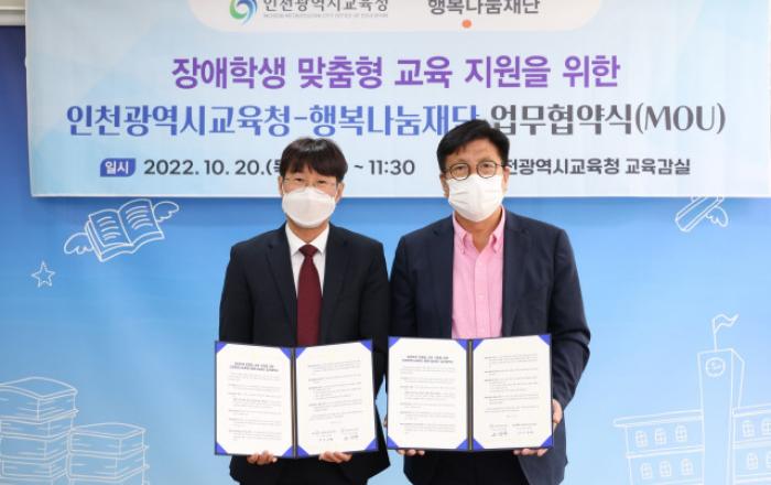 SK의 사회공헌 전문 재단 행복나눔재단이 인천광역시교육청과 손잡고 장애학생의 맞춤형 교육 지원에 팔을 걷어붙인다. 행복나눔재단은 10월 20일(목) 인천시교육청과 장애학생 맞춤형 교육 지원을 위한 업무 협약을 맺었다고 21일 밝혔다. 이날 오전 11시 시교육