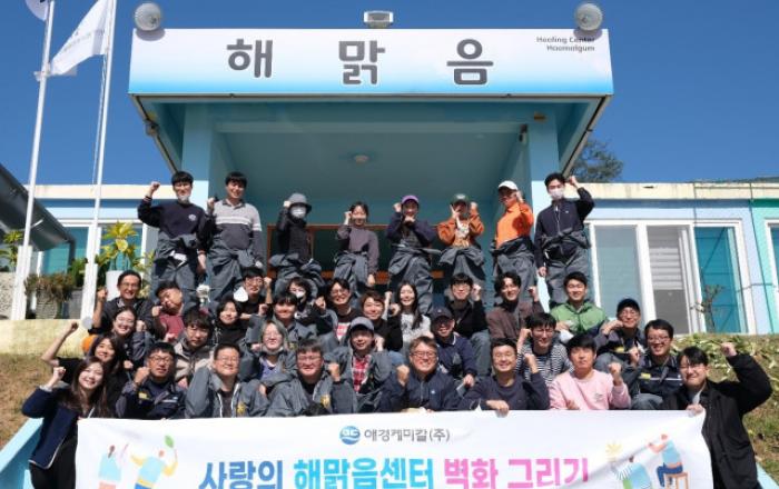 애경케미칼과 애경특수도료가 ESG경영의 일환으로 벽화그리기 사회공헌활동을 실시했다.애경케미칼 대전 연구소와 애경특수도료 직원 50여 명은 19일 대전 해맑음센터를 방문해 강당 건물 앞면과 뒷면에 그림을 그려 넣었다. 벽화그리기 활동에 사용한 친환경 페인트는 애경케미칼과