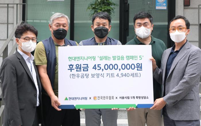 현대엔지니어링이 초복을 맞아 서울 쪽방촌 주거취약계층의 건강한 여름나기를 위해 팔을 걷어 붙였다.현대엔지니어링은 전국한우협회와 함께 돈의동, 창신동, 남대문, 서울역, 영등포 등 서울시 5개 지역 쪽방촌 주민에게 4,500만 원 상당의 보양식 키트를 기증하는 물품후원