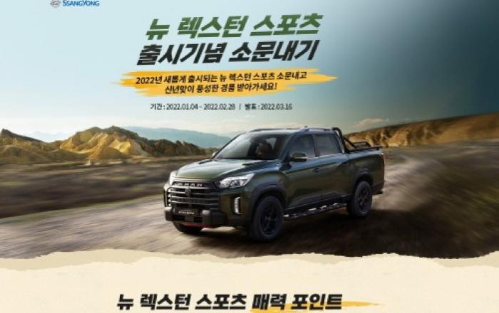 쌍용자동차가 압도적인 진화로 탄생한 리얼 K-픽업 '뉴 렉스턴 스포츠&칸' 출시를 기념해 '소문내기', '자랑하기' 등의 다양한 론칭 이벤트를 개최하며 신차 알리기에 나선다고 5일 밝혔다.2022년 국내 신차 론칭의 첫 테이프를 끊은 뉴 렉스턴 스포츠&칸은 수입 경쟁
