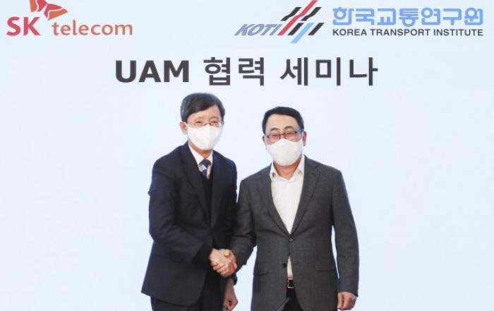 SK텔레콤은 한국교통연구원과 UAM 협력을 위한 세미나를 했다고 25일 밝혔다.24일 오후 SKT 본사 사옥에서 열린 세미나에는 유영상 SKT 대표와 오재학 한국교통연구원장 등 양측 주요 임직원이 참석했다.한국교통연구원은 우리나라 교통 수요 예측 및 정책 개발에 중추적