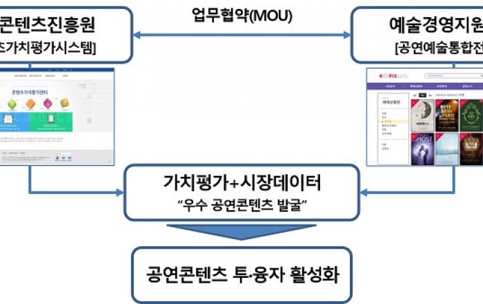 한국콘텐츠진흥원(이하 콘진원)과 예술경영지원센터(이하 센터)는 ‘공연콘텐츠 가치평가 활성화를 위한 업무협약’을 16일 체결했다.◆ 콘텐츠가치평가로 공연시장 투·융자 금융생태계 활성화 위해 상호 협력 다짐이번 업무협약은 공연시장의 합리적인 투·융자 확대를 위한 기본적인