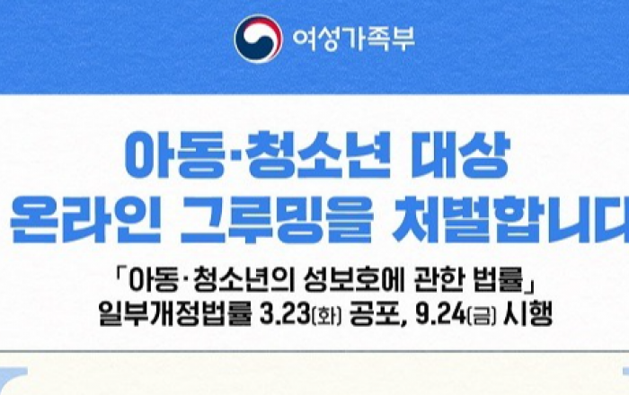 앞으로 경찰이 위장수사로 아동·청소년 디지털 성범죄를 막고 처벌할 수 있게 된다. 또 온라인 그루밍이 신종 성범죄로 범죄 구성요건이 규정돼 처벌이 가능하게 됐고 범죄 피해를 사전에 막기 위한 경찰의 신분비공개·위장수사 특례도 처음으로 제도화됐다.여성가족부는 23일 아동
