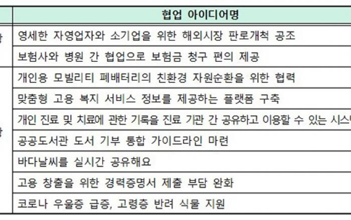 행정안전부가 영세한 자영업자와 소기업을 위한 해외 시장 판로개척 공조 등 총 9개의 협업 관련 국민제안을 ‘2021년 우수 협업 아이디어’ 제안으로 선정했다.지난 2017년부터 공모를 진행한 협업 아이디어 제안은 일반 국민들이 직접 생활 속 불편 사항들을 발굴해 문제