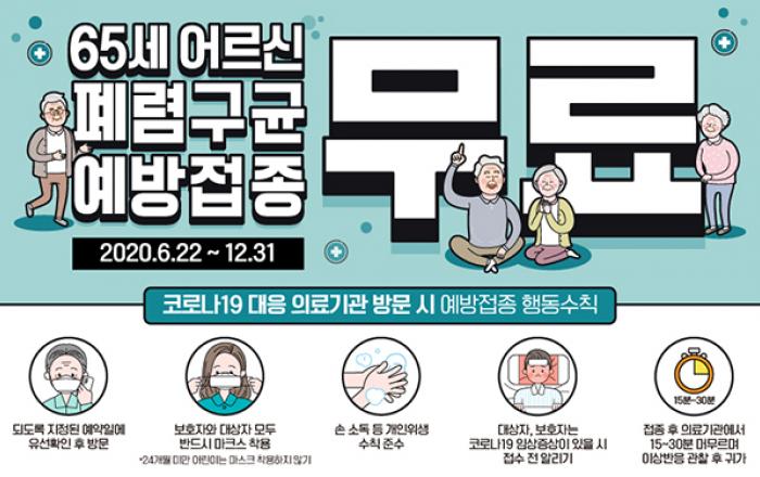 정부가 22일부터 전국 65세 이상 고령자의 폐렴구균 무료 예방접종을 민간 병·의원(