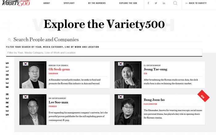 미국 아카데미 영화상 작품상 등 주요 부문 후보에 올라 주목 받고 있는 <기생충>의 봉준호 감독과 영화진흥위원회 오석근 위원장이 미국 엔터테인먼트 전문매체 ‘버라이어티(Variety)’가 선정한 ‘세계 엔터테인먼트 리더 500인’에 선정됐다. ‘버라이어티(V