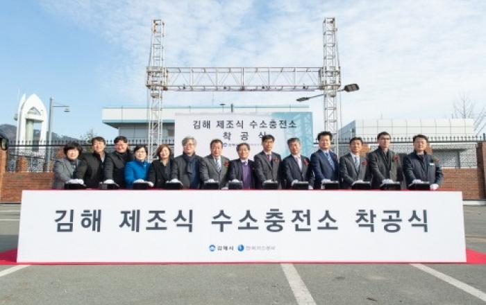 한국가스공사와 16일 가스공사 부산경남지역본부 사옥에서 '김해 제조식 수소충전소 착공식'을 가졌다고 밝혔다.행사에는 성영규 가스공사 부사장, 조현명 김해 부시장을 비롯한 관계자 및 시민 등 70여 명이 참석했다.김해 제조식 충전소는 지난해 1월 정부의 수소경제 활성화