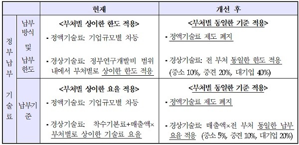 부처별로 상이하게 적용하던 기술료 납부 최대한도와 납부기준을 통일해 행정부담을 완화할 예정이다.