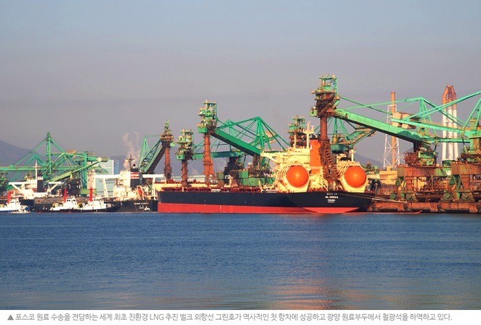 포스코의 LNG 추진 해외 원료 전용선이 첫 항해를 성공적으로 마치고 ‘친환경’ 운항에 본격 나섰다.