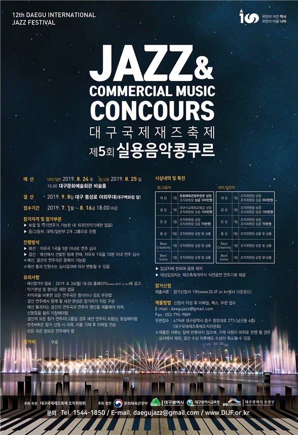 ‘제12회 대구국제재즈축제’ 는 9월 16일부터 수성못과 동성로 야외무대, 수성 아트피아 등 소극장에서 만날 수 있다.