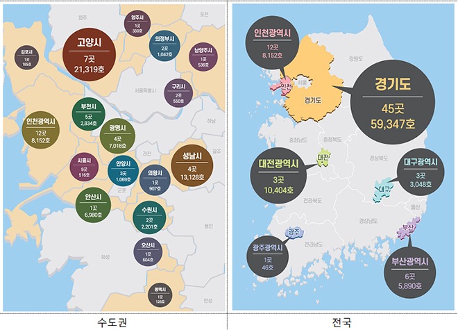 구체적으로 고양시 7곳(2만 1000가구), 성남시 4곳(1만 3000가구), 광명시 4곳(7000가구), 부천시 5곳(3000가구), 인천 부평구 9곳(3000가구) 등이다.