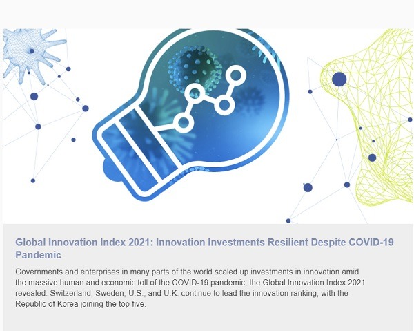 산업통상자원부와 특허청은 23일 UN산하기구인 세계지식재산기구(WIPO, World Intellectual Property Organization)가 지난 20일(한국시간) 발표한 글로벌 혁신지수(Global Innovation Index)에서 이와 같은 평가를 받았다고 밝혔다.