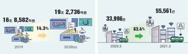 지난해 데이터산업의 전체 시장규모는 19조 2736억원으로 전년 대비 14.3% 성장했으며, 올해 3월 기준 공공데이터 개방 건수는 5만 5561건으로 전년 대비 63.4% 증가해 데이터경제 활성화를 위한 기반을 제공하고 있다.