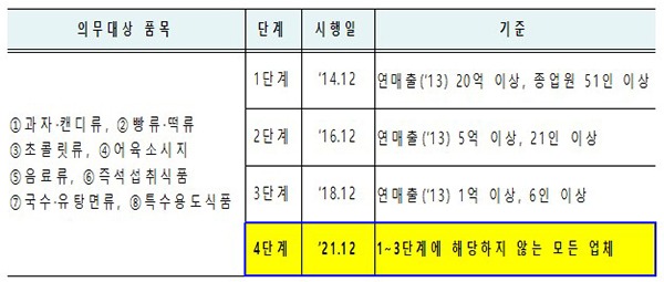 의무적용을 유예받고자 하는 영업자는 오는 18일까지 한국식품안전관리인증원(관할지원)으로 신청하면 서류검토와 조건부 승인 절차 등을 거쳐 의무적용 기간이 연장된다.