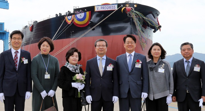 특히 정택근 ㈜GS 대표이사(부회장)의 부인인 최지은 여사가 선박 명명을 위한 대모(代母)로 나서 선박에 V. Progress라는 이름을 부여하고 안전 운항을 기원했다.