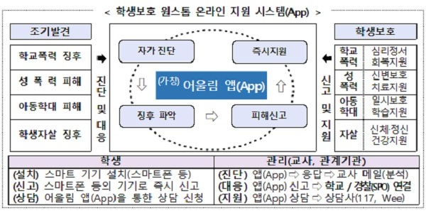 앞으로 학생이 폭력에 노출되면 즉시 지원하는 전방위적 학생보호 원스톱 온라인 시스템이 구축된다.
