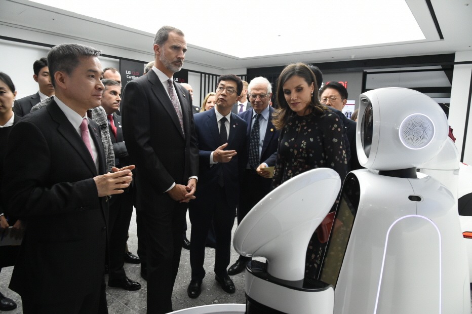 펠리페 6세 국왕은 LG사이언스파크 이노베이션 갤러리에서 롤러블 TV, 자율주행 솔루션, 로봇 등 LG의 첨단 제품도 살펴봤다.
