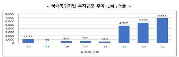 이 같은 국내복귀기업의 수와 투자액은 단일연도 기준으로 사상 최대 실적이다.