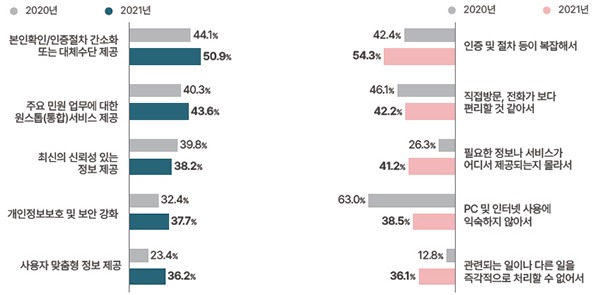 다만 만족도는 소폭 하락했는데, 코로나19 백신접종 사전예약 당시의 접속장애로 인한 이용불편 경험이 영향을 미친 것으로 보인다.