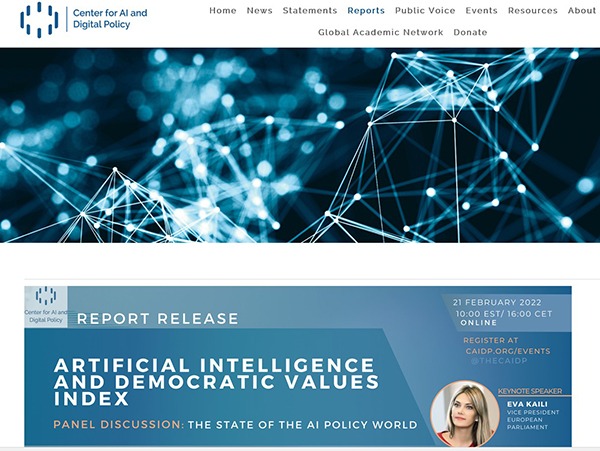 인공지능디지털정책센터는 미국 워싱턴DC 소재의 비영리단체로, 지난해부터 인공지능 관련 정책과 관행이 얼마나 민주적 가치와 조화를 이루는지 그 수준을 측정하는 인공지능 민주적 가치 지수를 발표하고 있다.