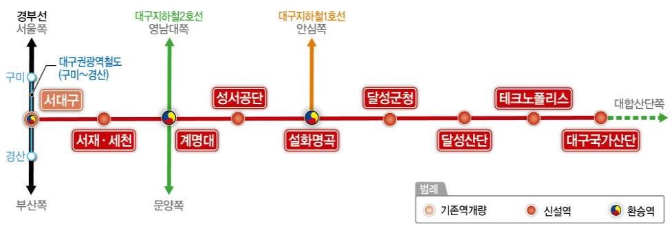 향후 건설이 완료되면 화물열차와 전동차가 투입되어 KTX․SRT가 정차하는 서대구역(‘22.3.31 개통)에서 지하로 대구국가산단까지 운행하는 노선이 마련된다.