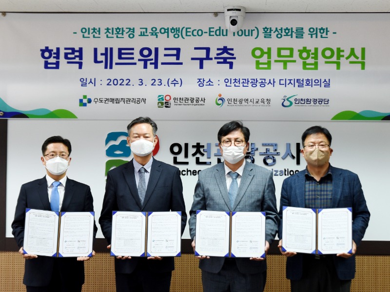 수도권매립지관리공사는 3월 23일 인천관광공사, 인천광역시교육청, 인천환경공단 등과 ‘인천 친환경 교육여행(Eco-Edu Tour)'을 활성화하기 위한 업무협약을 체결했다.